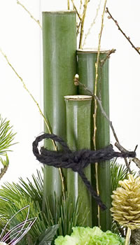 - 竹に松を添えるという現在の門松の原型が出来上がったのは、室町時代になってからです。竹も長寿を象徴することから、こうしたかたちができあがったと言われています。